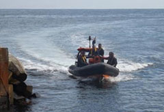 Above: Left to Right: RMS St Helena arrives at 08.00; HE Governor Mark Capes enters Calshot Harbour on the Police RIB;