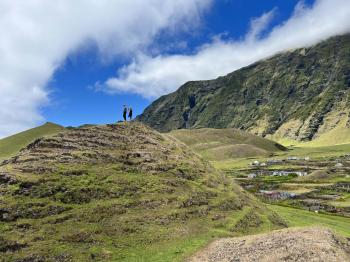 The Island Store opened especially for them so they could stock up on groceries and essentials, and the Tourism Centre welcomed them with a delicious lobster lunch, giving them a true taste of Tristan hospitality. After lunch, Odile, CBTO Manager, kindly took them on a tour of the Potato Patches, sharing a glimpse into island life and traditions. They were dropped back at the harbour at about 3:00 pm so they could return briefly to the yacht to collect their shower things.