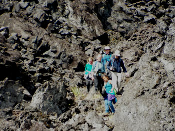 Right: walking back down the 1961 volcano. |