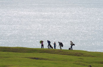 Returning from a walk to the island cemeteries |